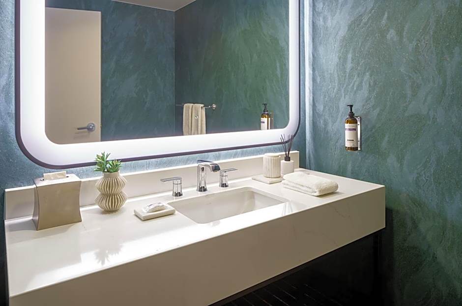 This spacious suite features a separate living room and work area.